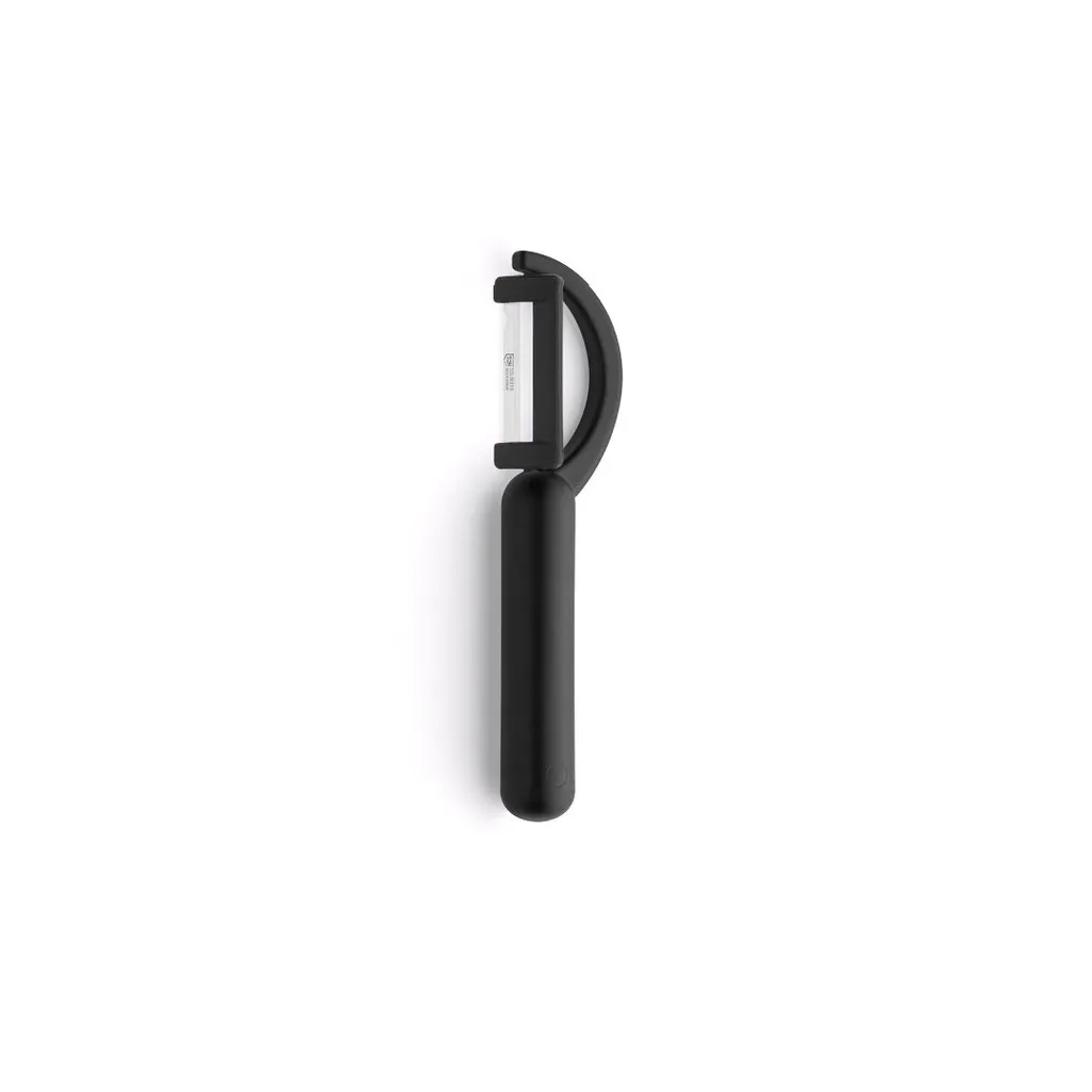 This peeler has a sharp vertical blade, which provides a clean, straight cut without fraying the food. With the vertical peeler, you peel using your wrist, which is less tiring than with conventional peeling knives. It can peel small fruit and vegetables, such as potatoes, with ease and without producing much waste. It is suitable for left- and right-handed users. Available in a variety of colours.