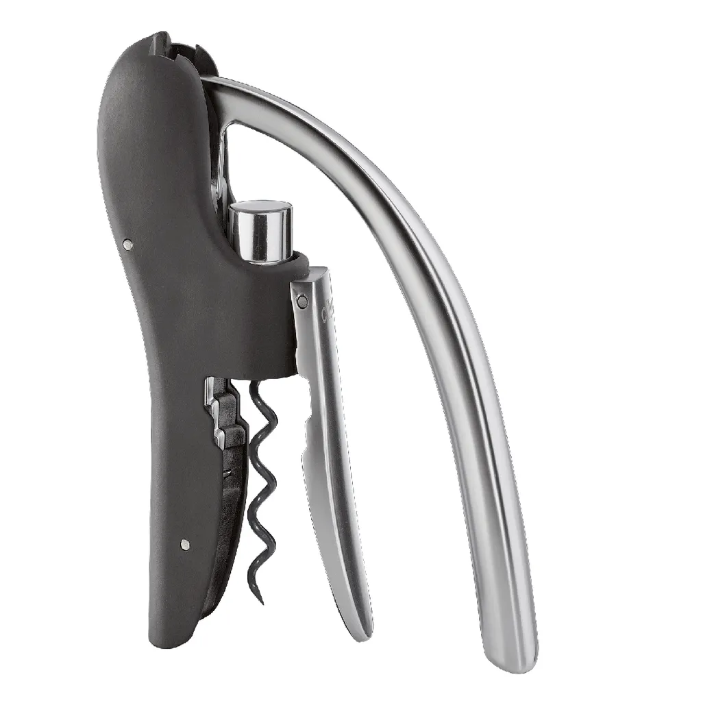 The Cilio Chablis corkscrew is an automatic corkscrew. The spiral mechanism is chrome plated with a high quality finish. It features an integrated foil cutter with a replacement spiral. The handle of the corkscrew is black.
