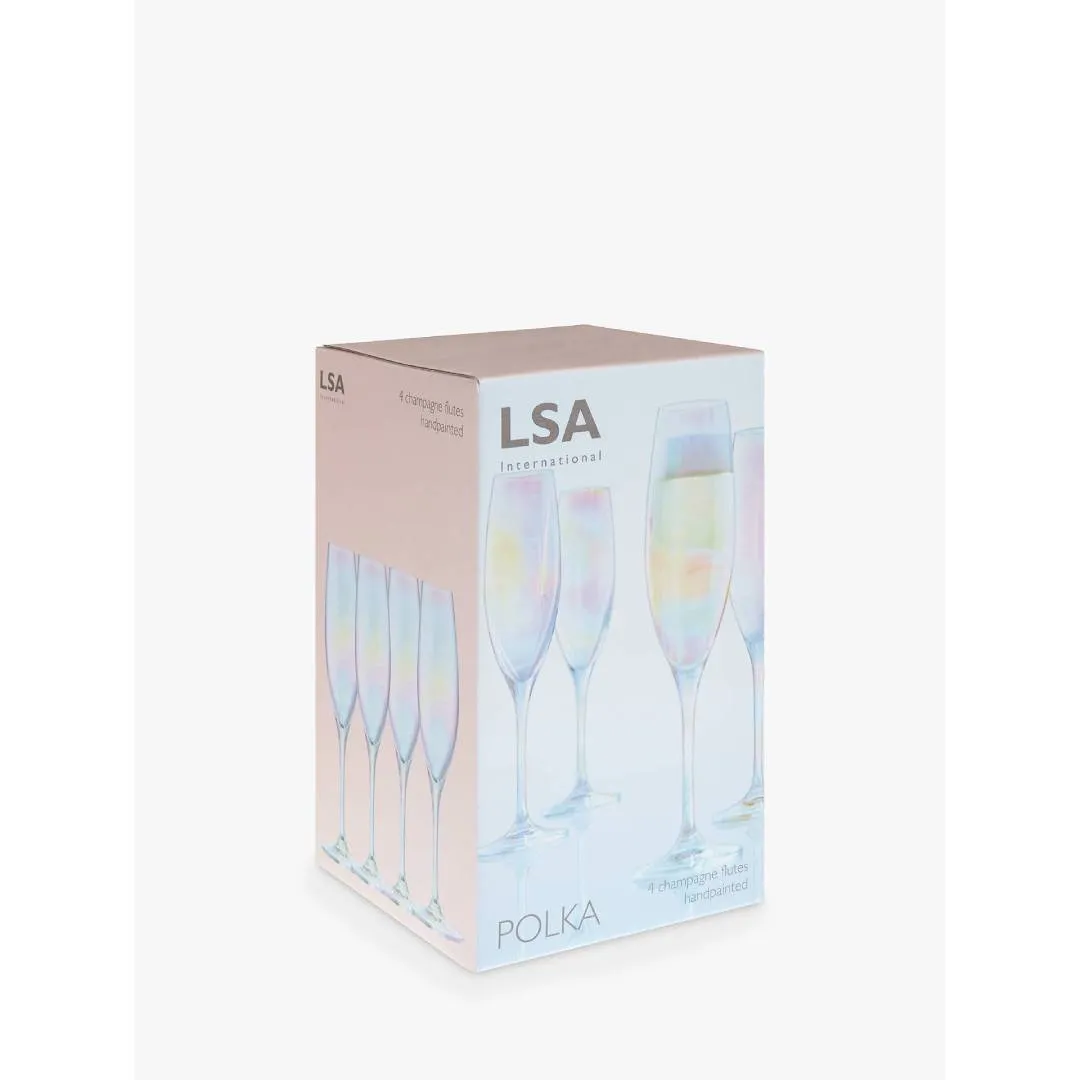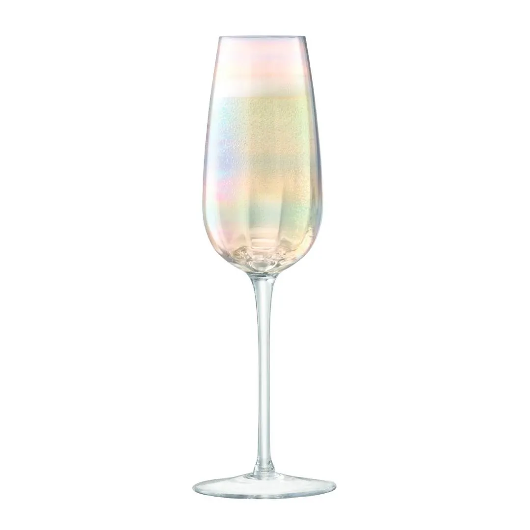 A set of four mouthblown flutes with elegant hand-drawn stems from LSA International's Pearl glassware collection. The long stem keeps the bowl and its contents chilled and the narrow shape retains bubbles when enjoying champagne, prosecco and sparkling wines.