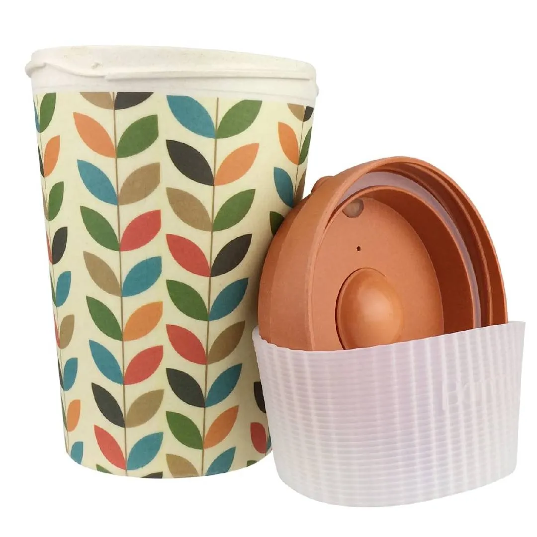 The Travel Mug is made of sustainable bamboo fibres and corn powder, and while not breakproof, is durable and safe for the dishwasher. The patented, lockable lid is leakproof making it convenient for when you are on the go. There are many unique and creative designs choices available in this range.