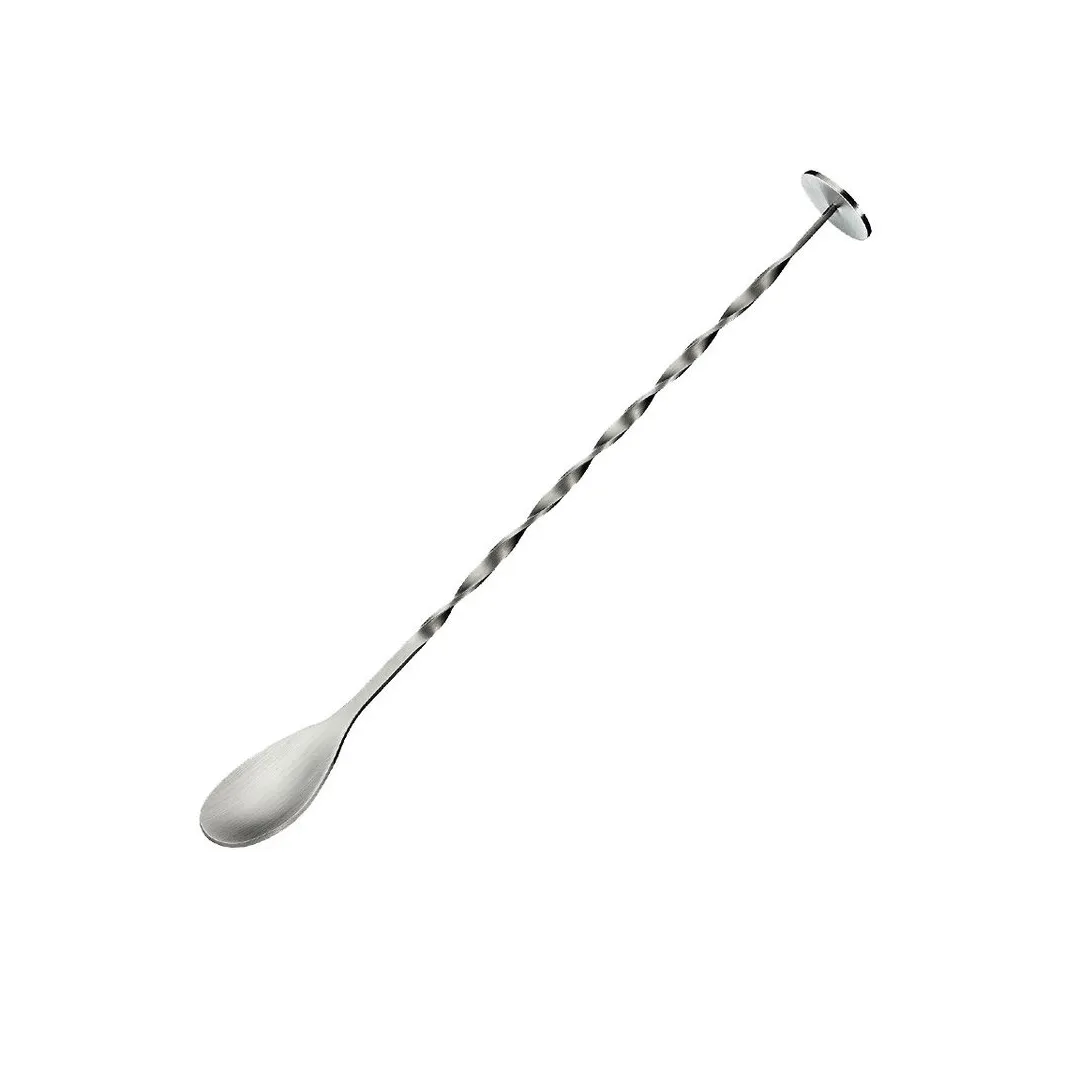 Solid and durable accessory for your kitchen or bar area use to stir your cocktails or to make beautiful layers. Twice as good the end of the cocktail spoon is equipped with a cocktail masher, so it can be used in long-drink glasses. The handle is also fully turned. The cocktail spoon is made of high-quality stainless steel and is dishwasher safe after use.
