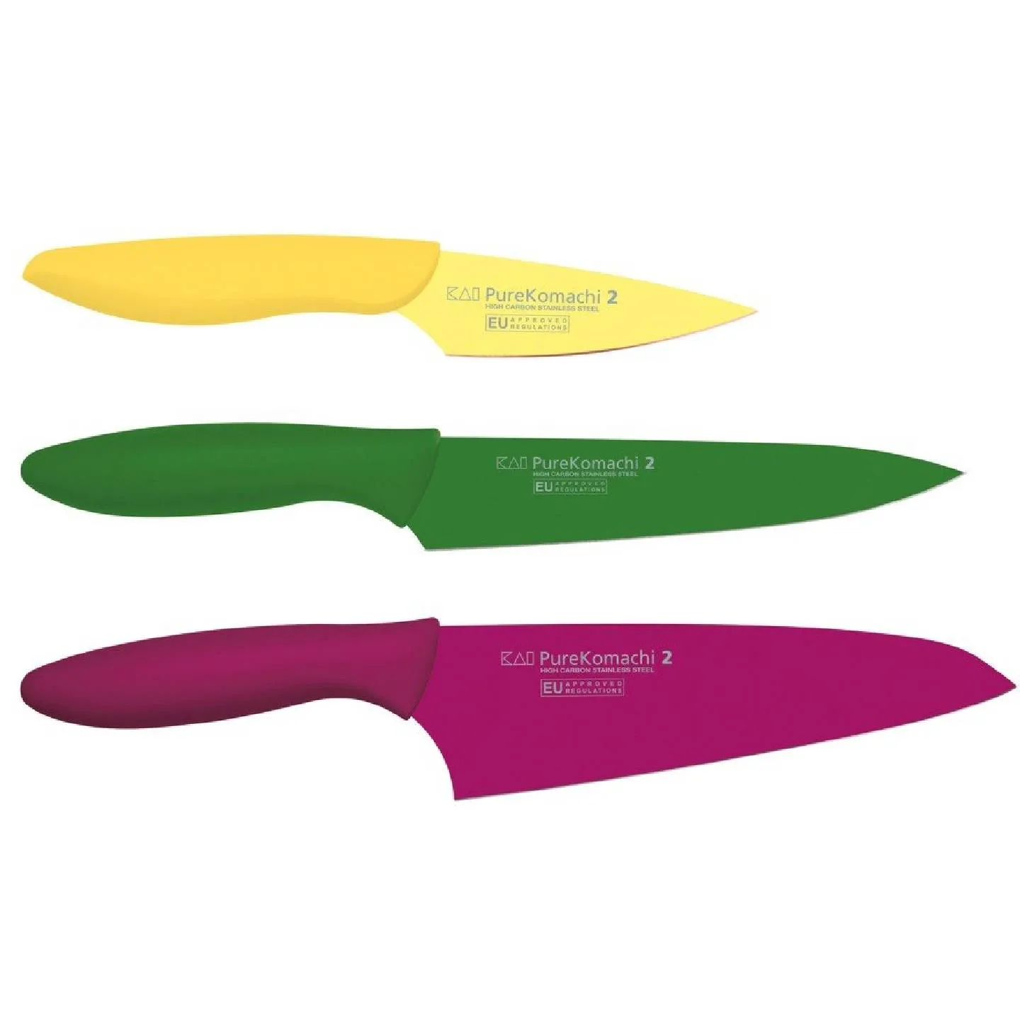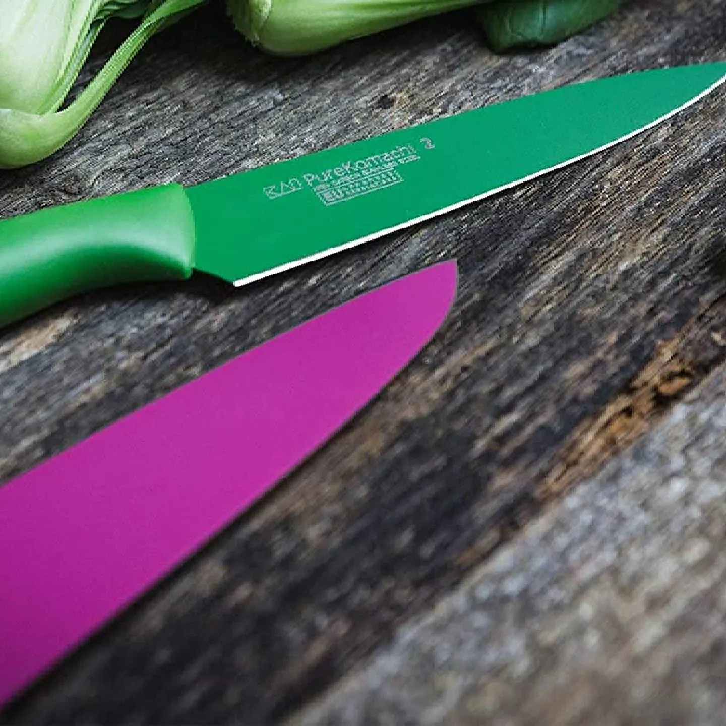 The Pure Komachi Series' knives introduce a wealth of playful colours. Visually, these knives are distinguished primarily by their coloured coatings. The series' blades are made of corrosion-resistant stainless steel and add significant value in terms of removing cut material from the blade, especially when combined with their coloured, non-stick coating on both sides. The double-sided blades boast a hardness of 53 ±1 HRC. Each knife is assigned a specific colour, allowing for an easy overview. The ergonomic plastic handle is monochromatically tailored to match the coloured coating of the blade and is securely moulded to the blade and provide superior cutting comfort for effortless progress.