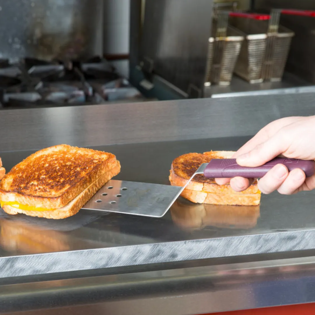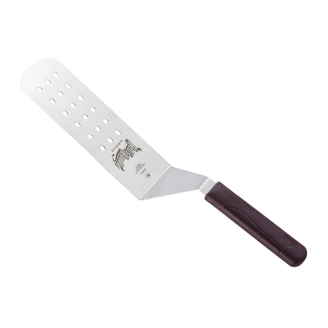 The precision-ground stainless steel blade provides the perfect combination of flexibility and stiffness. It is connected to the handle with a sanitary seal design. The innovative high heat-resistant handle absorbs 50% less heat, staying cool to the touch. It also features a dual-textured finish for extra grip and slip resistance.
