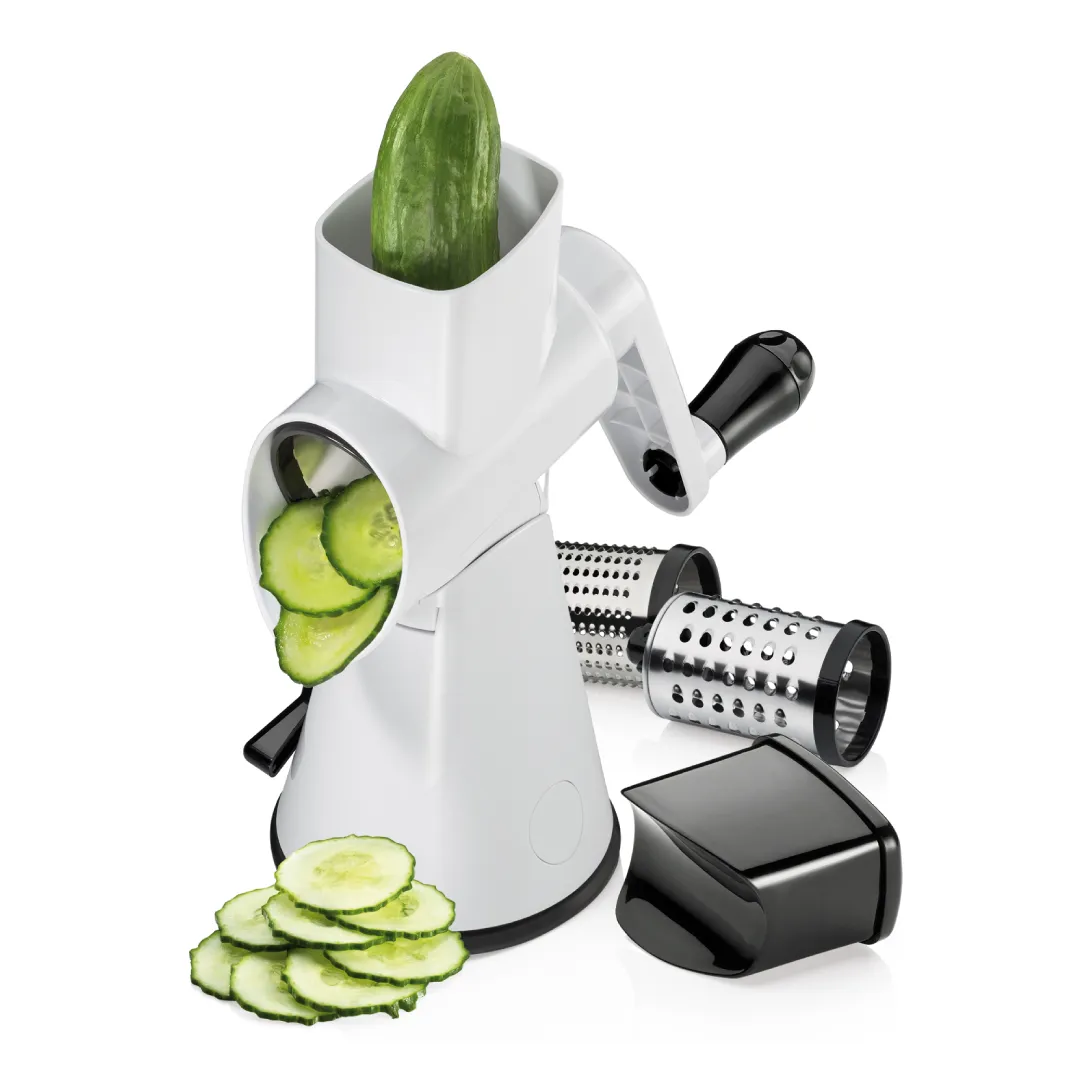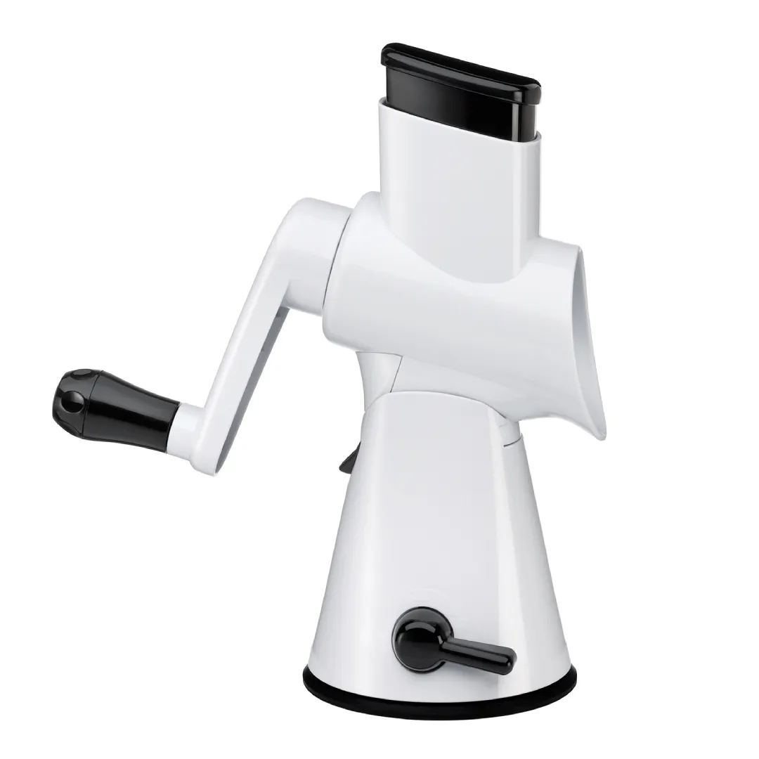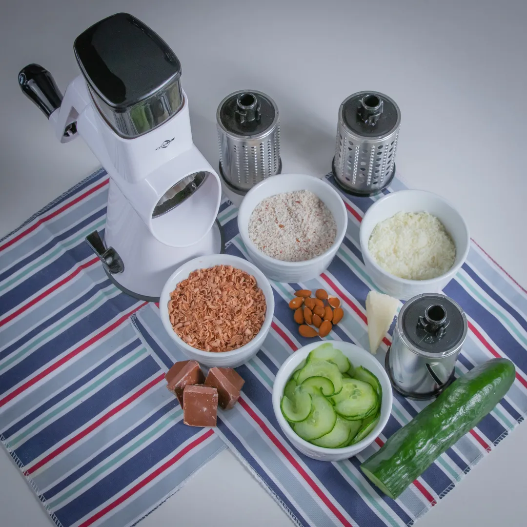 SKU: 1310222200Plastic drum grater with 3 drum options, suction foot for sturdy hold and pestle for safe working. Drums are dishwasher safe. read more ↓ read less ↑