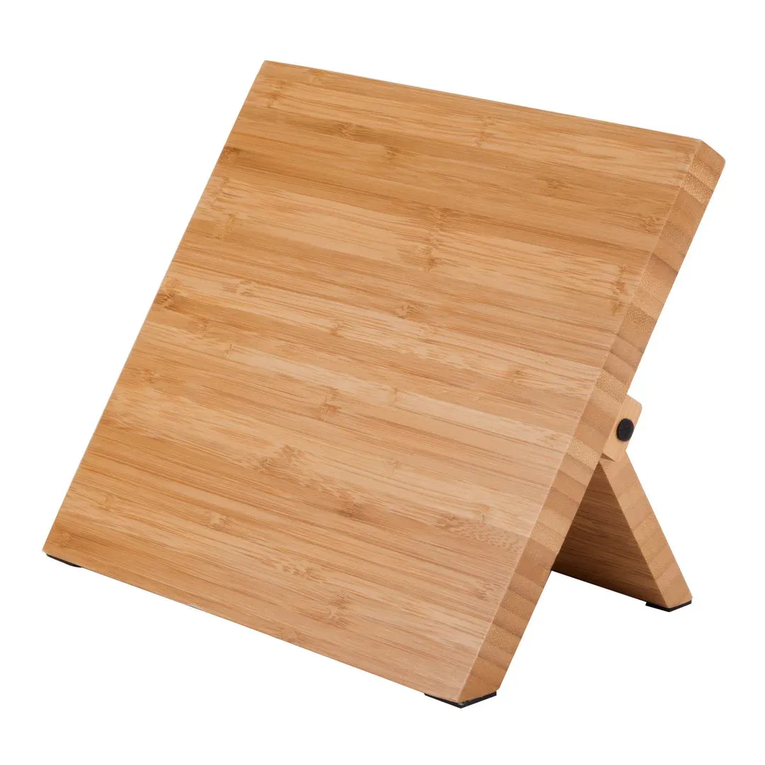 Strong, recessed magnetic bars keep knives and utensils in place, while the foldable hinge design allows for compact storage. Silicone pads prevent the board from slipping and protect the counter. The open design allows for the storage of any combination of knives or utensils.