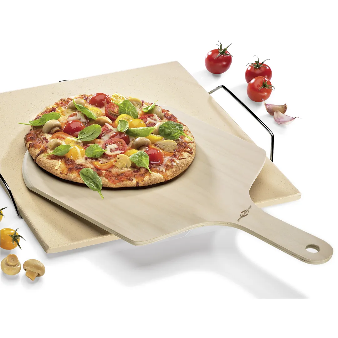 The pizza paddle from Kuechenprofi is a great choice. He is big enough, flattened and slides effortlessly under the pizza. Without having to tediously re-plate, eat directly from the solid natural wooden board. Even when inserting a pizza in the oven proves the helper and minimizes the risk of burns.