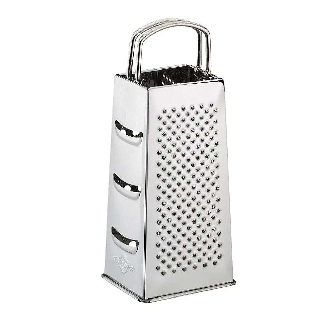 SKU: 1005122800Stainless steel jumbo grater with a comfortable handle, has different grating textures on each of its 4 sides, dishwasher safe. read more ↓ read less ↑