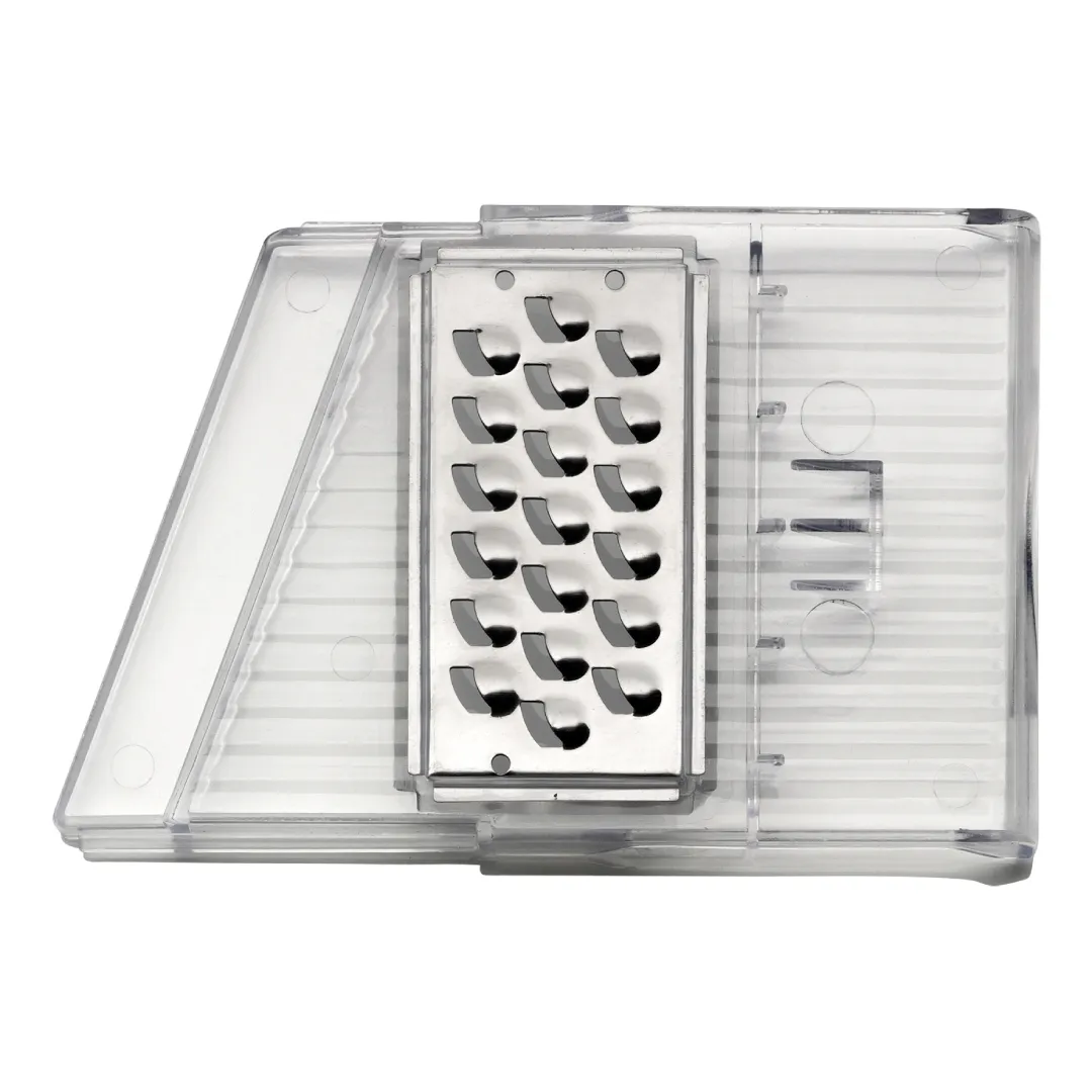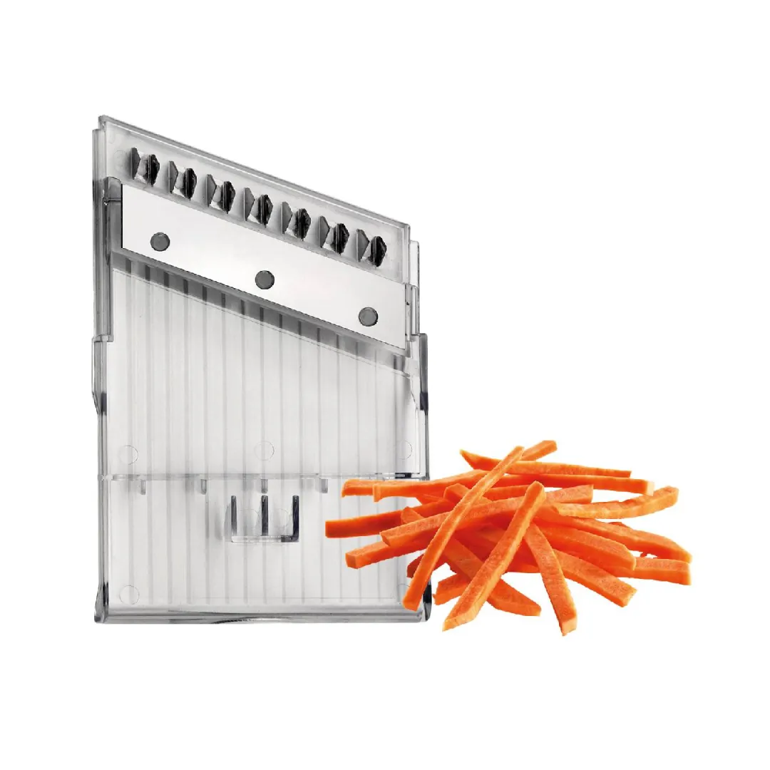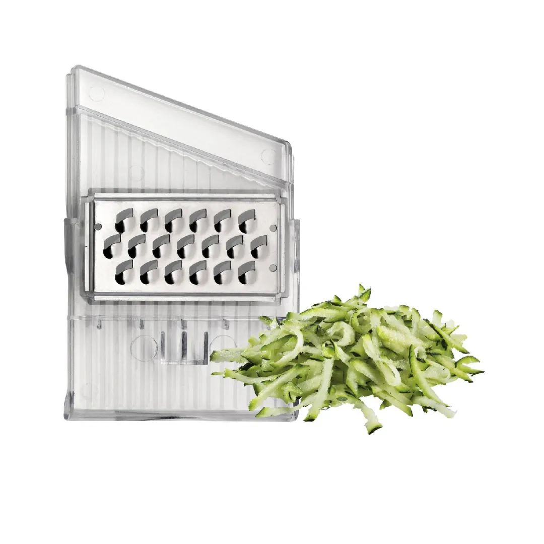 SKU: 1310842200Mandoline Slicer with non-slip feet. 4 stainless steel blade inserts for slices, grating and julienne strips. read more ↓ read less ↑