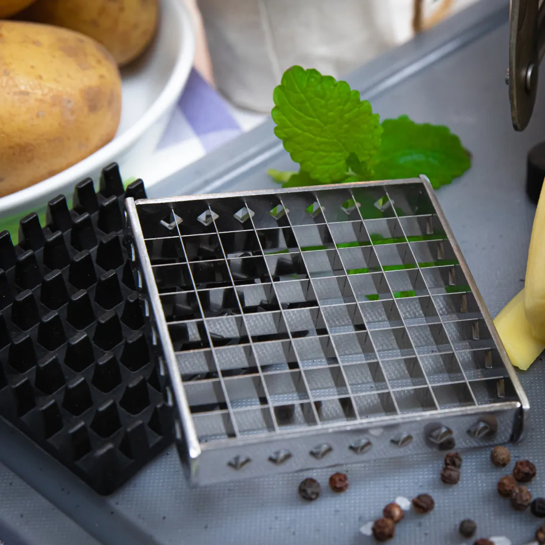 SKU: 1310572800Stainless Steel potato cutter for homemade fries. 2 different cutting size inserts, also cuts vegetables such as pumpkin or zucchini, into 0,9cm or 1,2cm thin chips. Non-slip feet hold the cutter in place, dishwasher safe. read more ↓ read less ↑