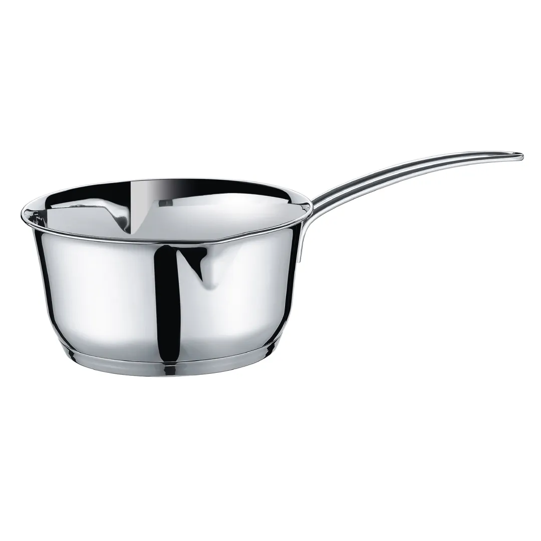 Perfect for making sauces effortlessly. The inner scaling of the container is practical when preparing and reducing sauces, and the 2 pouring spouts makes it easy to use. The handle is long enough and can be grasped well. This stainless-steel pot has a sandwich base that is a great conductor for heat and dishwasher safe. It is suited for all types of stoves, including induction cookers.
