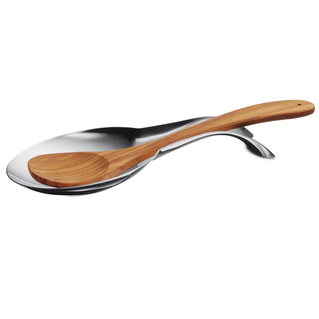 SKU: 1002222800Stainless steel spoon rest, for holding any cooking or tasting spoon. By placing your used utensil in this handy soon rest, your kitchen surface will remain clean. It is also dishwasher safe. read more ↓ read less ↑