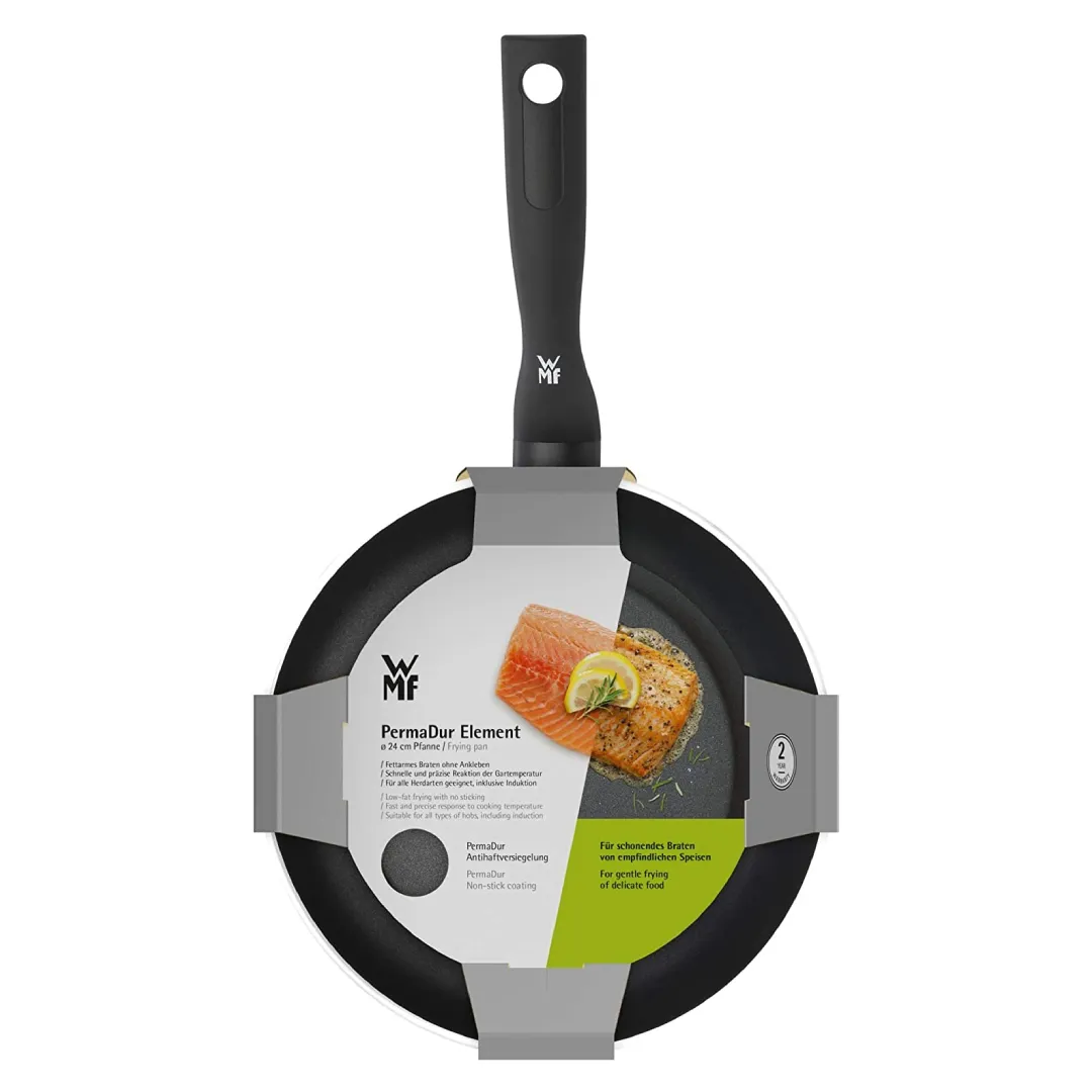 SKU: 0545244021WMF PermaDur Element frying pan 24cm. 3-layer PermaDur non-stick coating, PFOA free. The frying pan is made of Aluminium with a plastic handle with flame guard. read more ↓ read less ↑
