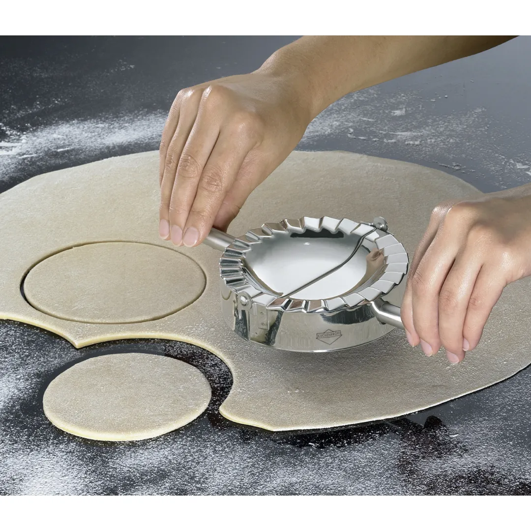 Cut, seal, and crimp ravioli effortlessly with the Kuechenprofi Ravioli Maker Mini 8cm. The outer edge is designed for precise cutting, while the inner edge ensures a secure, leak-free seal. Beyond ravioli, this versatile tool is perfect for creating dumplings, pierogies, wontons, mini pies, biscuits, and more. The Ravioli Makers are available in three sizes to suit all your culinary creations.