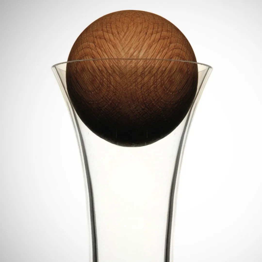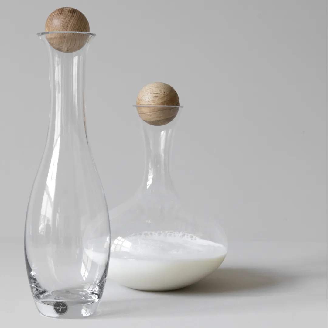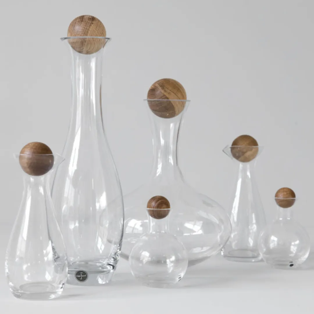- Made of mouth-blown glass with an oak stopper