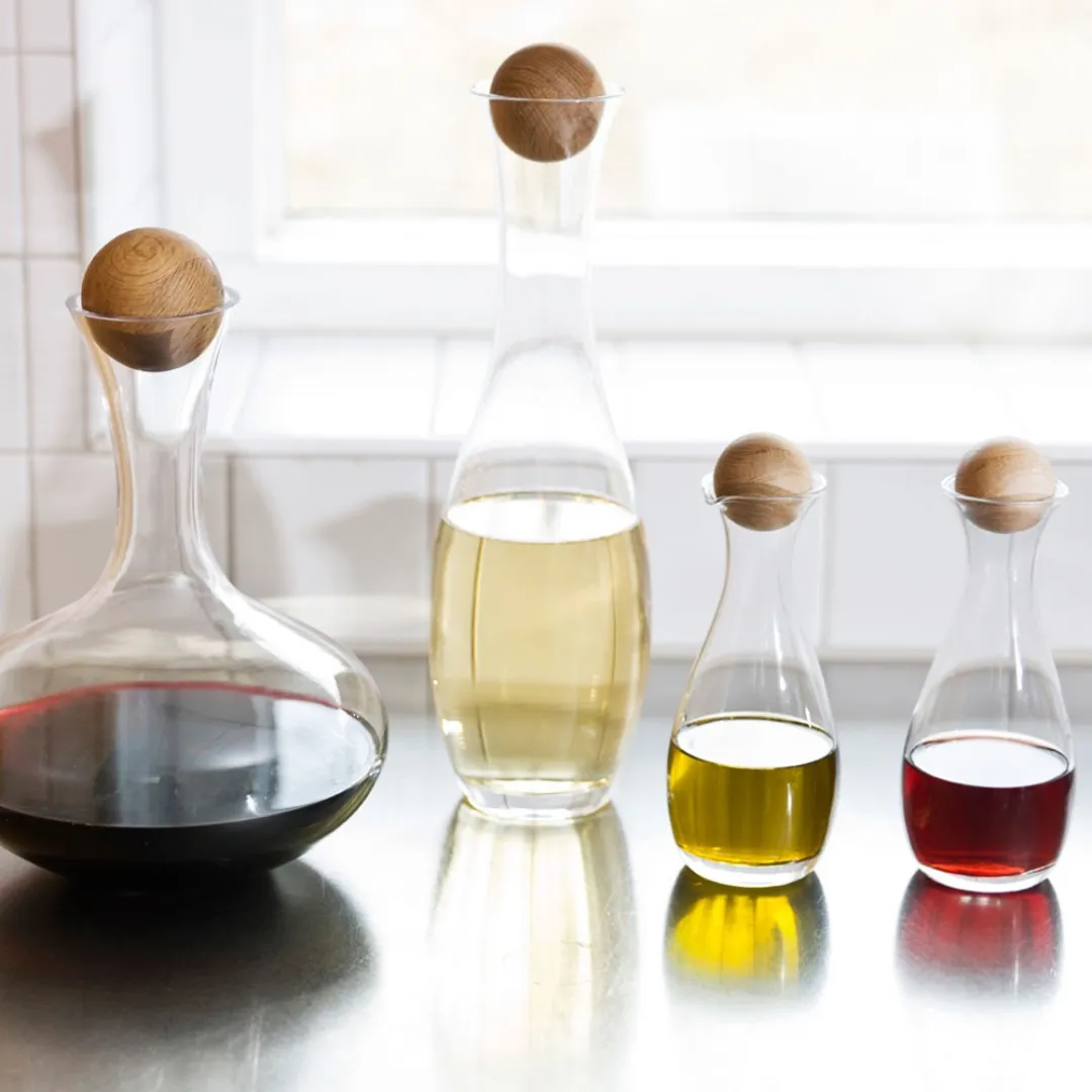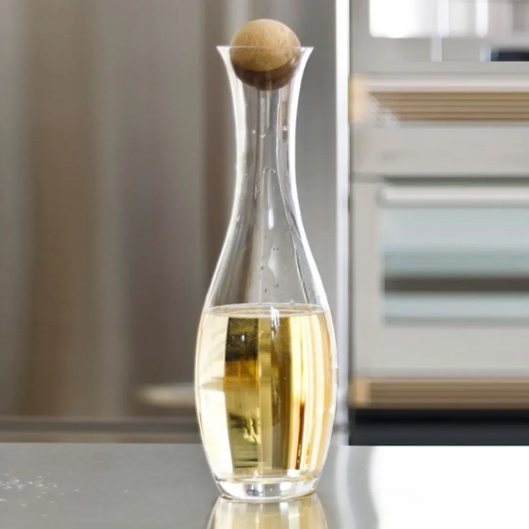 SKU: 5015336Glass Carafe with Oak Stopper 1 litre for red wine but can be used for other beverages. Hand wash only. read more ↓ read less ↑