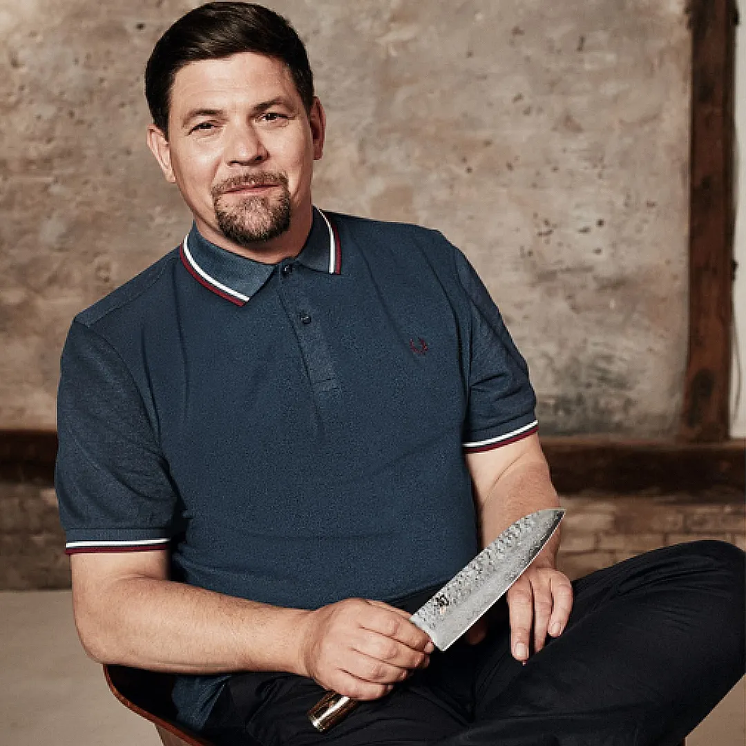 The Shun Premier Tim Mälzer Series has been tailored specifically to the needs and requirements of professional chefs. In this premium series, the high-quality material properties of the well-known Shun Classic Series are combined with an entirely novel and commanding overall appearance. The blade is divided into three different textures: The blade's back down to its middle has been hammered to create a surface known as Tsuchime. This is followed by a fine matt Damascus grain typical for Shun. The blade is finished with a highly polished precision cutting edge. The meticulously machined blade is paired with a medium brown-grained Pakkawood handle. The blade's particularly hard and durable steel core provides incredible sharpness and long-lasting cutting ability.