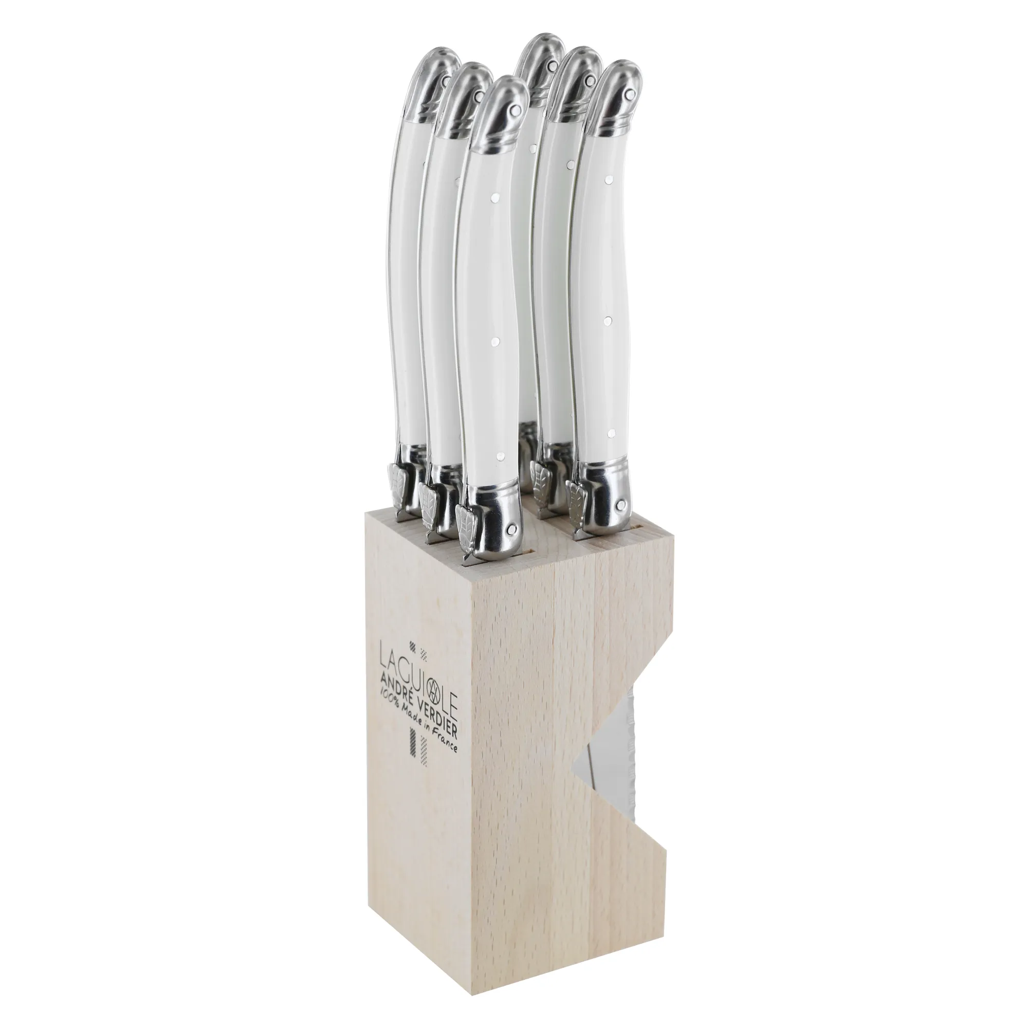 Andre Verdier Steak Knife Set 6pc with Wooden Stand - Chalk White