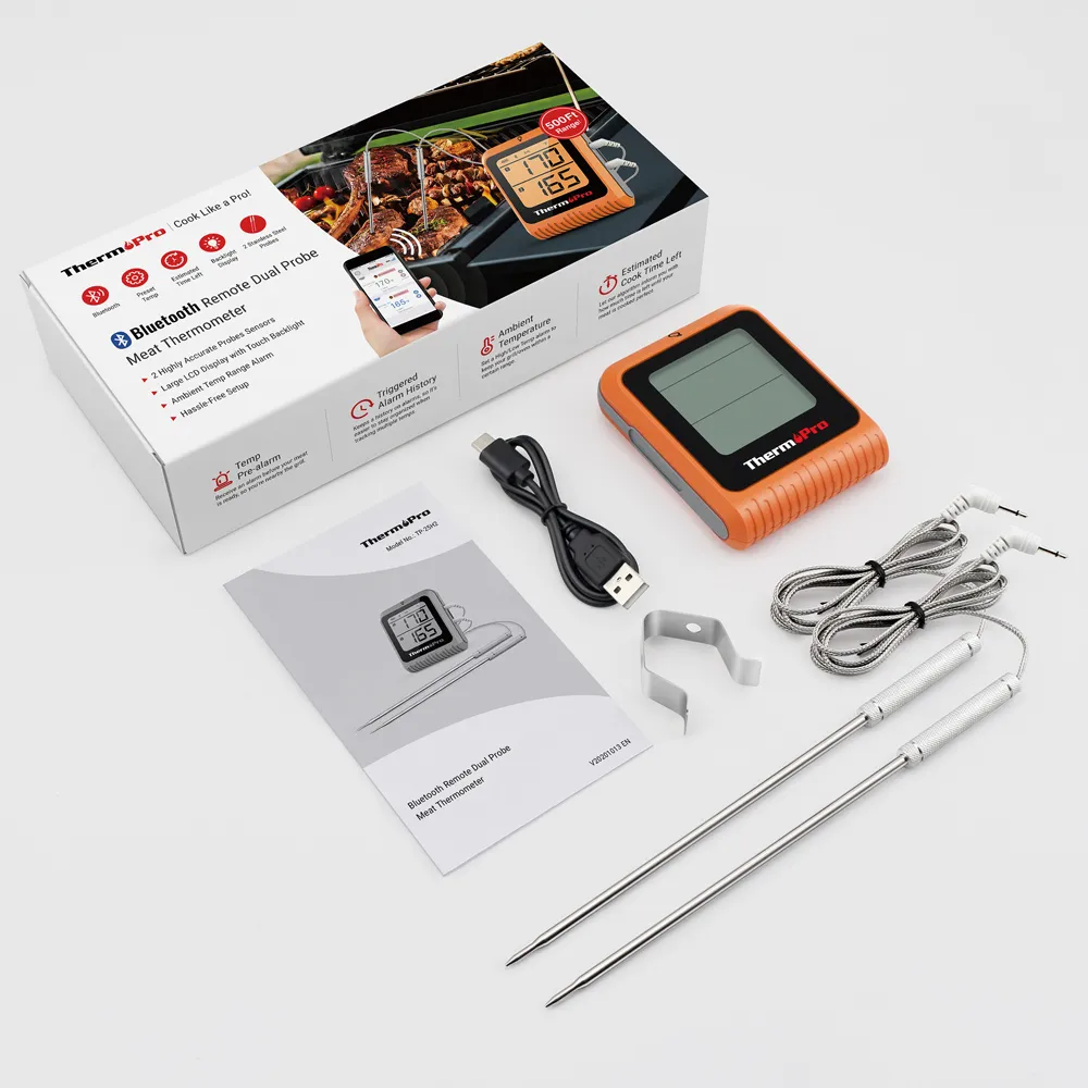 SKU: TP-920Smart Bluetooth wireless cooking Thermometer 150m is rechargeable and equipped with a 5.0 Bluetooth compatible technology and a remote range up to 150m. read more ↓ read less ↑